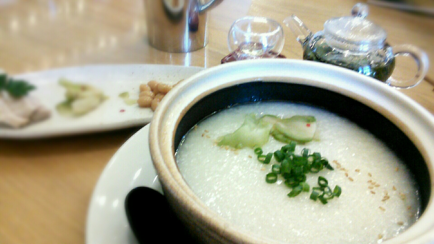おかゆのセットに凍頂ウーロン茶。