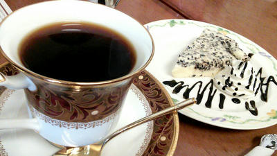 キリマンジャロと、黒ごまのチーズケーキ。