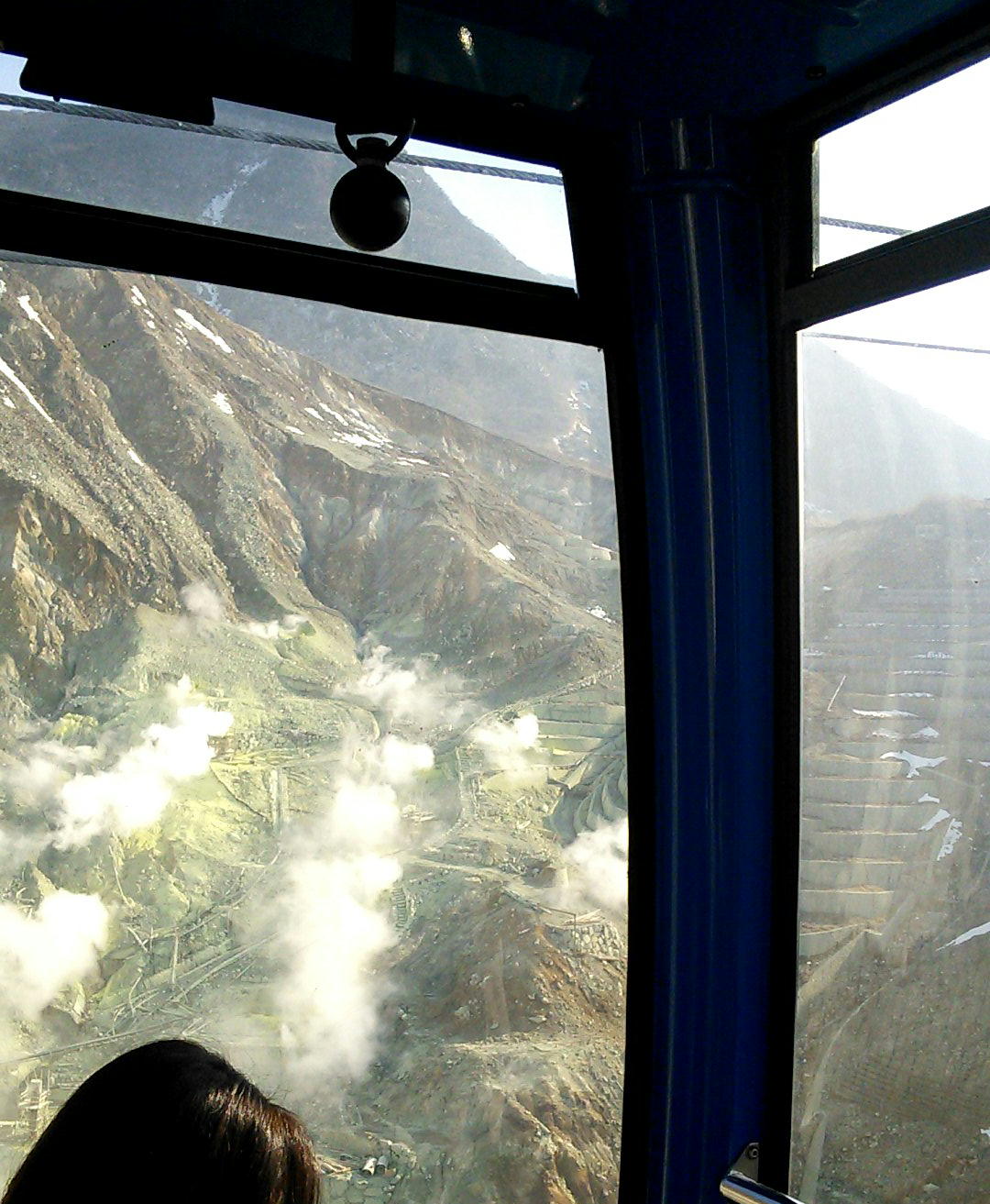 その後ロープウェイになるが、途中乗り換えで(大涌谷)同じくロープウェイの乗り継ぎで、桃源台に行く。(芦ノ湖のすぐ近くね)