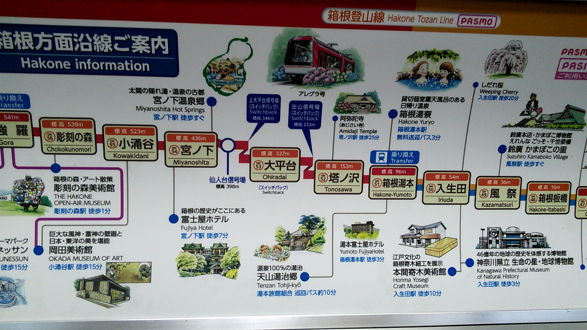 強羅に到着するまで、社内では観光案内のアナウンスもあって、ゆっくり時間のかかる行程を楽しませてくれた。